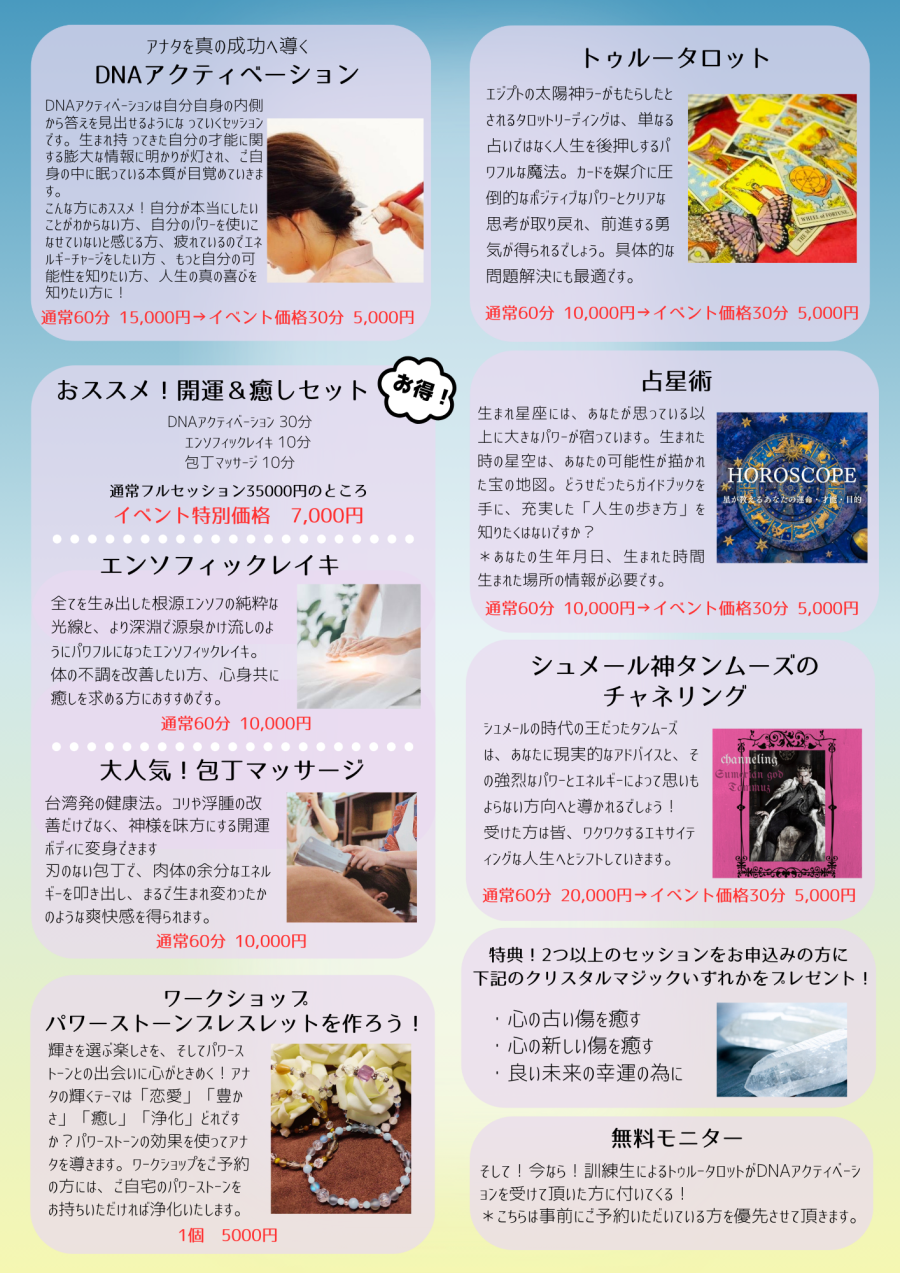 どちらもヒーラーとして、施術メニューが更に増えますので是非ご参加ください。