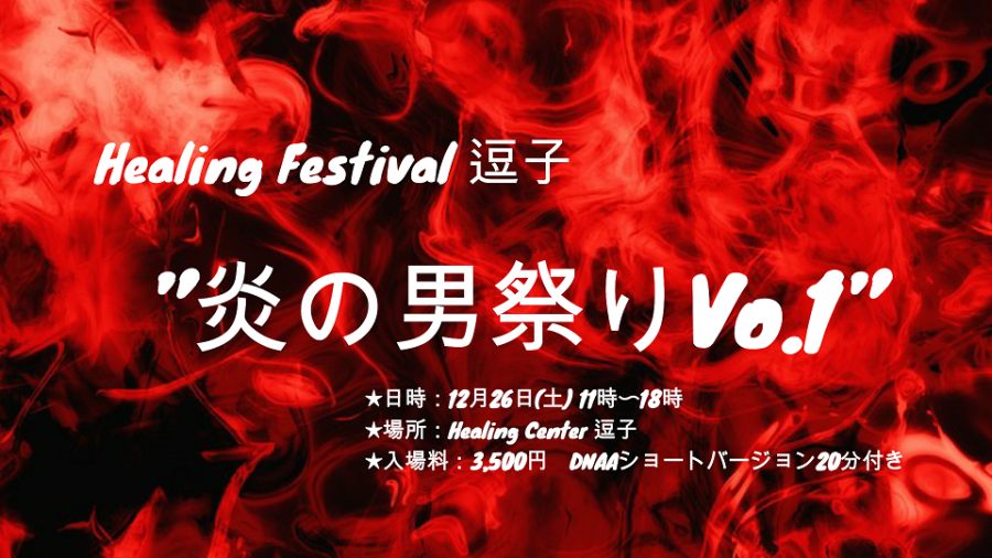 こんにちは、MMS公認ガイドの認定から宮崎出張へ怒涛の2週間が終わりやっとブログにたどり着いたぞーというナオさんです。ということで、発表です。(パチパチ)ナオさん主催でイベント決定です。「逗子 Healing Festival "炎の男祭りVo.」を12月26日(土)11時から18時にヒーリングセンター逗子で開催します。なんで、「男祭り」なのか?決して男性だけに集まってほしいというわけではないんですよ!女性の方の参加大歓迎です!月に何回か横須賀サロンで瞑想会をやっているのですが夜の会が男性率がすごく高いんです。そこで、男性だけでイベントやったら「面白そうだね!」から「やってみよう!」になりました。(笑)なぜか、横須賀サロンに来ている男性ヒーラーはガテン系!私を含め「暑苦しい!」違った!「さわやか!」でも、こんな男性たちでも形而上学を日々の生活に生かしているというところをお見せできると思って...